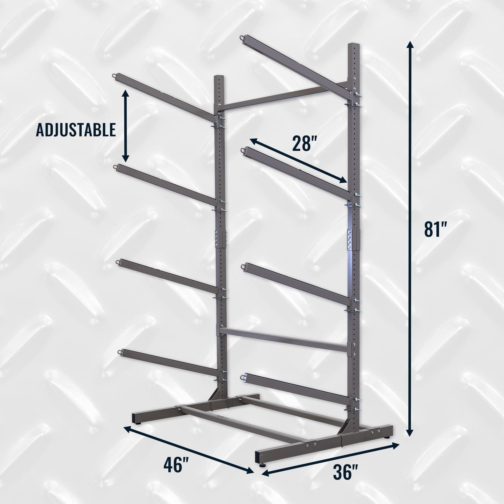 - Adjustable shelf heights accommodate different watercraft sizes
